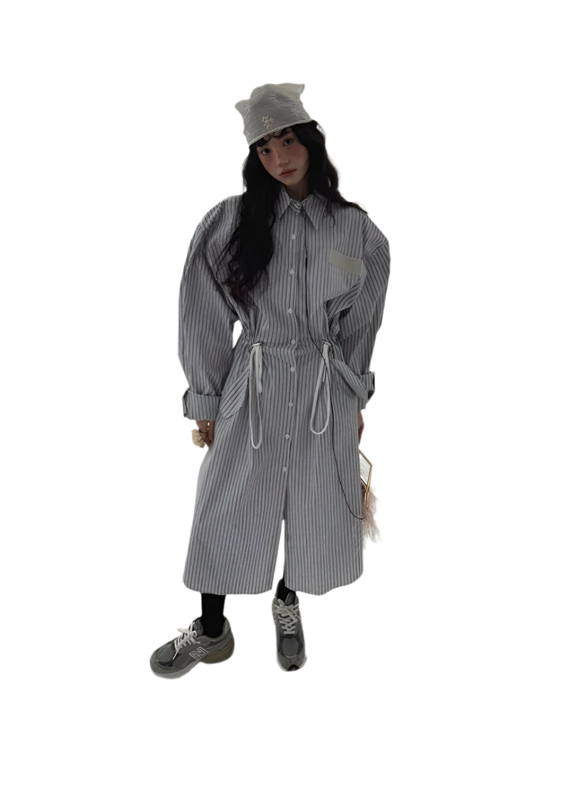 A perfect blend of structure and ease, the Clever Alice Stripe Shirt Jacket is a versatile layering piece designed for effortless style. This one-size jacket is made in Korea and offers a relaxed, modern fit that drapes beautifully over any outfit.