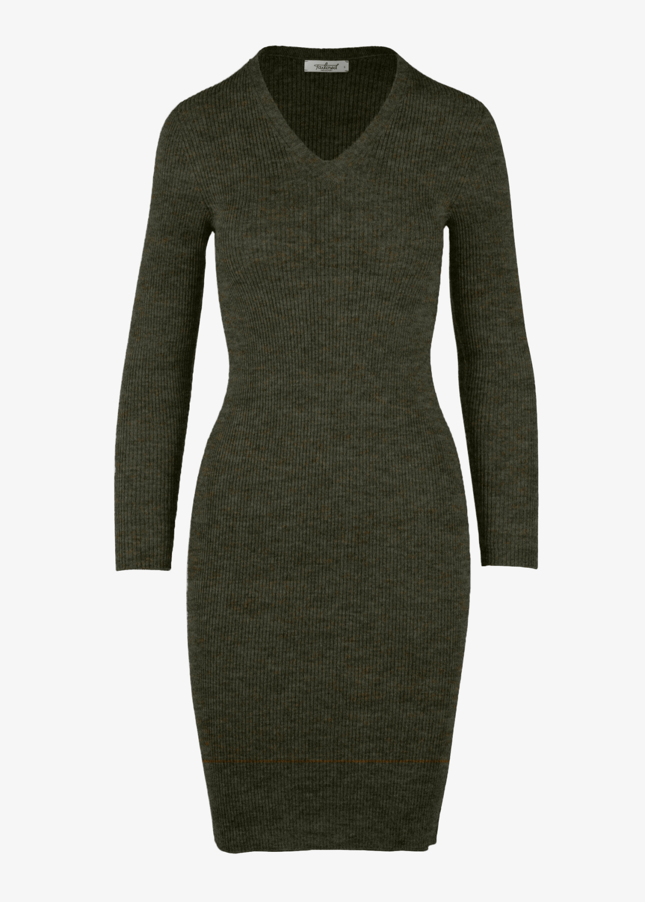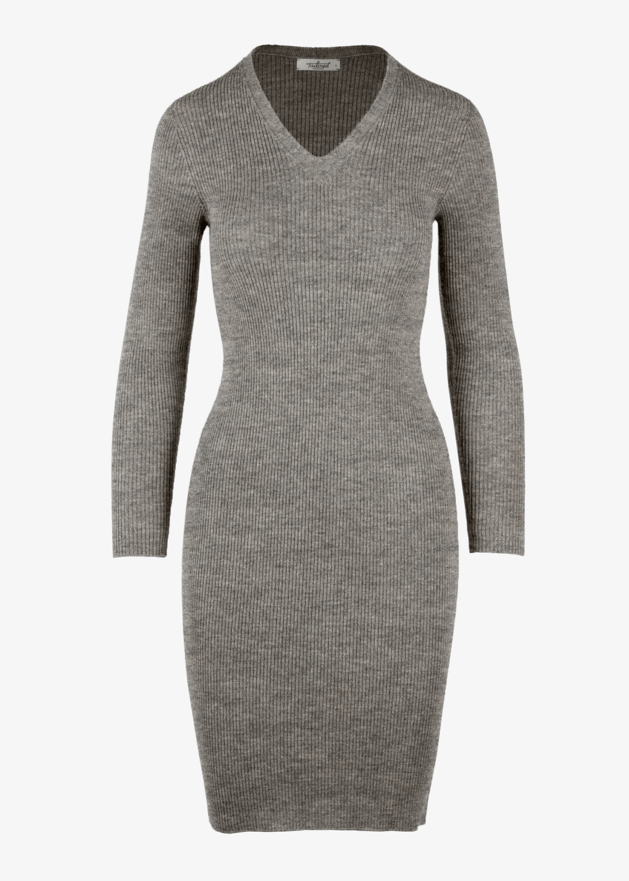 Long-sleeved, above-the-knee dress with slim-fit, body-contouring silhouette.