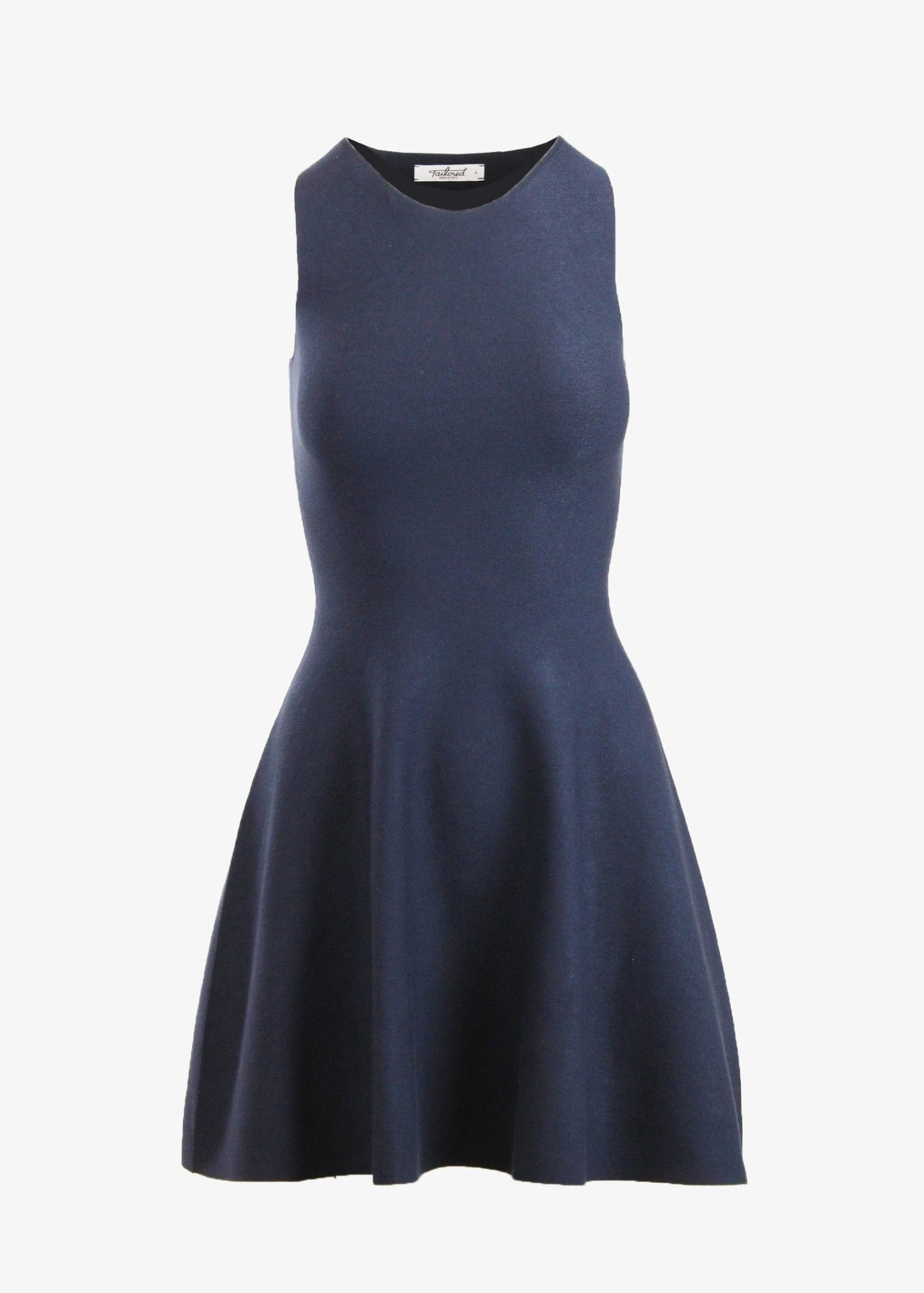 • Flattering flared silhouette with a cinched waist and seamless ribbed construction