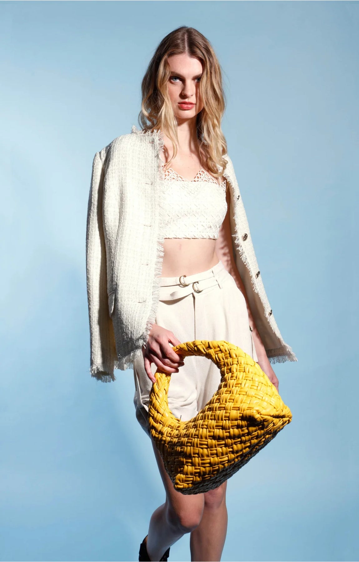 The Indie Hobo woven bag is the must-have style for the season. Dimensional and chic, it also holds everyday essentials for on-the-go use.